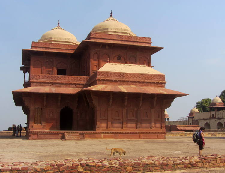 Then I went into the Palace buildings proper, for which I needed a ticket (500Rs) but no skirt. I've read many reviews of the place on the Internet and they all gush about this lost-in-time, almost perfect, World Heritage Site city, but I think I had seen so much Mogul architecture over the past month that it was like, yeah, it's pretty good but no more. As I mentioned before I much prefer the single edifices situated in stunning gardens. Give me the mausoleums anytime. I think the problem I have is that I see the building but I think, "What was it used for? What did it look like when it was used? Where's the furniture?!" In fact no one seemed to know the function of any of the buildings. I have to say though that it was large enough to easily accommodate the tourists and I did enjoy wandering around all the multifaceted buildings with their exquisite carvings. An impressive sight. And apparently as it was abandoned not long after it was built, that is why it is still in pristine condition.
