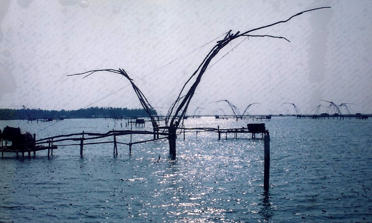 The day of the 6 buses and the 12 hour trip. From Cheetal Walk to Ooty to Coimbatore to Uddakam to Palghat to Trichur to Cochin, or rather the mainland part of the city, called Ernakulam. But I arrived At the Lucya Hotel in good spirits and celebrated with a cold beer. After a good night's sleep I got the ferry to Fort Cochin and had a good explore of the many narrow alleys of Jewtown and the traders' quarter. Even now I can remember passing the spice traders' godowns and taking in the heady aroma of cardamom, turmeric, cloves and cumin. Not far away from the hustle and bustle of the old town and lined up along the waterways I found the famous Chinese fishing nets which are something of a symbol of Kerala. But it was only a brief stop as I was soon off again. My diary is a bit light on details but I took in the famous backwater boat trip before getting more buses before arriving for some beach R and R at Kovalam. It had a bit of a reputaion in those days as a hippy retreat for those who thought Goa was getting too mainstream. It's a bit different now. I stayed at Surya's and took the Presidential suite at the princely sum of 150Rs (£3). I ended up staying almost a week at Kovalam, chilling out at Lighthouse beach during the day, playing backgammon and then partying at night. But before long it was time for the off again on the final stage of my trip, to Madurai.