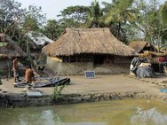 As I had a few days spare on my Indian holiday, I decided to book an overnight trip to the Sundarbans. It was possibly the best decision I made all holiday. I did a bit of research and decided to go on a tour with tourdesundarbans.com and they were fantastic. December and January are their peak months when their tours get packed but at the end of February it was only me, Yogish, an Indian guy from Mumbai and two Canadians Jake and Jordyn along with our guide AJ. It took all morning to get there. A few hours in a minibus followed by a very small, rickety ferry, a trip on the back of a strange hybrid three wheeler along narrow paths and through local villages and another rickety ferry. But then we had arrived at "eco village". "The brothers" as the three blokes who set up the tour company like to call themselves had purchased a bit of land just outside the Sundarbans National park and set up a half a dozen cottages. It was actually much more comfortable than I imagined. And, as an extra bonus there were very few mosquitos. We had some tea and a lie down but then in the late afternoon we were on our first recce. AJ got a small boat and we explored a number of the tributaries of the mangrove forest.