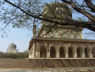 As a break from the heat, noise, dust and traffic of central Hyderabad I spent one day touring the fort of Golconda and the nearby tombs of the Qutb Shahis. Golconda Fort is about 10kms west of downtown Hyderabad and it took me 45mins by autorickshaw. Although 10kms west of downtown, you don't actually leave the city as the countryside doesn't begin until after the fort. I say countryside but the man at the chai stall near the fort told me they hadn't had proper rain for two years and so the surroundings were all barren, brown and very dusty. The fort was built by the Qutb Shahs in the 16th century and sprawls over a small hillside. Pictures don't really do it justice as it is a huge complex albeit almost completely in ruins. It was here that I first became aware of the large numbers of tourists in India - not foreigners, I hardly saw any on my entire trip, but Indian tourists. Many of them asked to be photographed with me so I took the opportunity to ask where they were from. It turned out from all over India!
