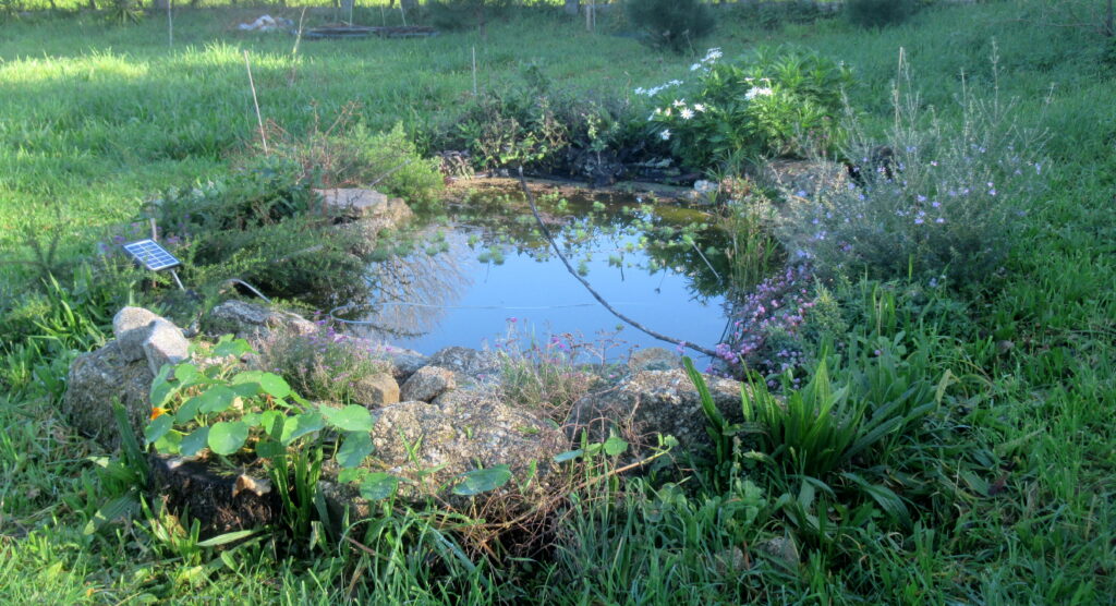 Fauna highlights include the family of green woodpeckers who we see daily below one of our largest olive trees, and an otter catching fish in the Lima. We’ve also seen a fox a few times in the garden which drives Betty (now 100 years old!) mad, and ‘the bat behind the plaque’ has returned a couple of times but is no longer a resident.