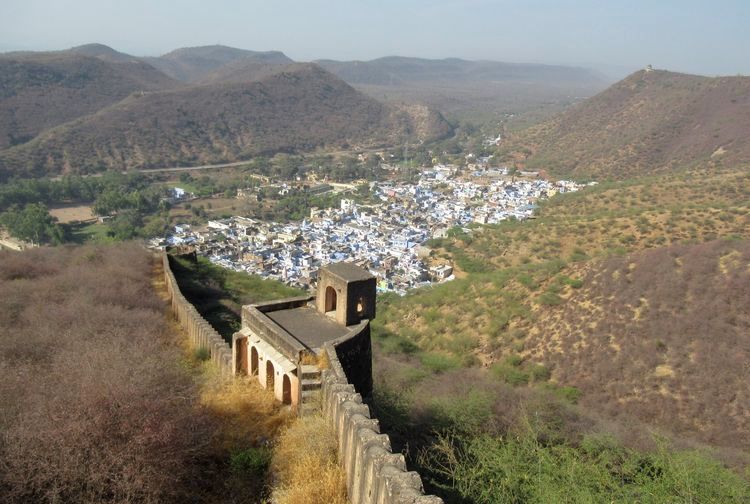 After a mooch round the palace I headed further up the hill behind to the Taragarh Fort. this is a bit of a steeper climb as it goes further out of the town and into the straggly jungle. the fort is now largely ruined and overgrown with a large monkey population watching your every step. The fort commands a marvellous view of the plains with the towers of Bundi far below.