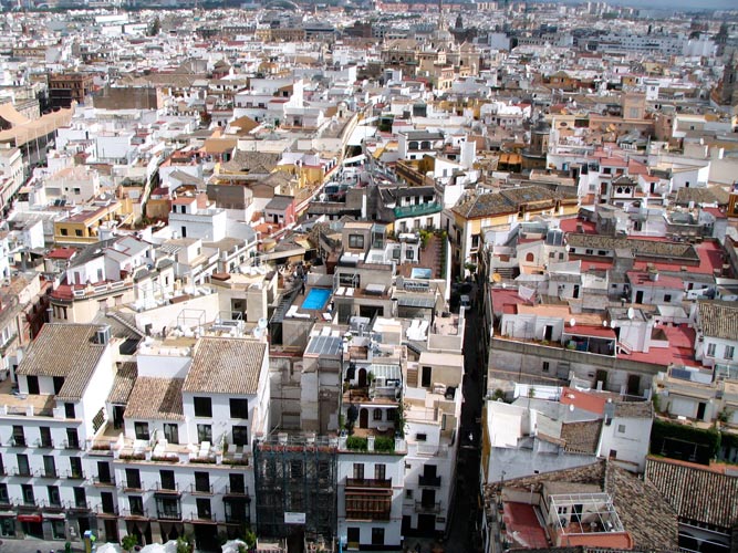 Unfortunately the tower, the Giraldo, wasn’t open until the official opening at 11.00. The Giraldo was the minaret of the original mosque which stood on this site until it was demolished to make way for the cathedral. It is easily the biggest minaret I had seen - especially its girth. But there was a reason for this - there were no steps on the inside but a ramp all the way up, apparently wide enough for a horse. Not surprisingly there are great views over the city from the top and we were also lucky enough to see the kestrels which roost in the tower.
